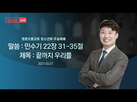 [영훈오륜교회 청소년부] 2/7 - 끝까지 우리를말씀 : 민수기 22장 31-35절제목 : 끝까지 우리를대표기도 : 이숙영 선생님말씀봉독 : 남현모 학생영훈오륜교회 청소년부는2월 ..