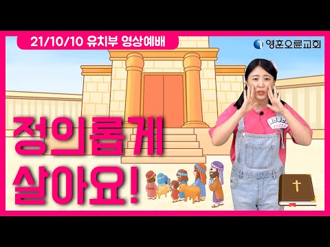 [영훈오륜 유치부 영상예배] 10/10 - 정의롭게 살아요!제목: 정의롭게 살아요!외울말씀: 잠언 21장 3절 말씀읽을말씀: 미가 6장 1~8절 말씀공의와 정의를 행하는 것은제사를..