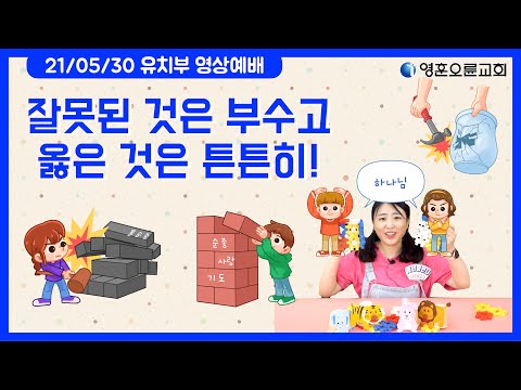 영훈오륜교회영훈오륜교회 2021.06.16 영훈오륜TV 부서설교 [영훈오륜 유치부 영상예배] 5/30 - 잘못된 것은 부수고 옳은 것은 튼튼히! [영훈오륜 유치부 영상예배] 5/30 - 잘못된 것은 부수고 옳은 것은 튼튼히!제목: 잘못된 것은 부수고 옳은 것은 튼튼히!외울말씀: 잠언 2장 8절대저 그는 정의의 길을 보호하시..