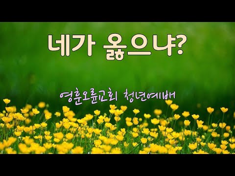 [영훈오륜교회 청년부] 청년부 5/9 온라인예배말씀 : 요나서 4장제목 : 네가 옳으냐?설교자 : 염에녹 목사찬양 : 최수봉건반 : 안유나드럼 : 황희찬베이스 : 정우재싱어 : ..