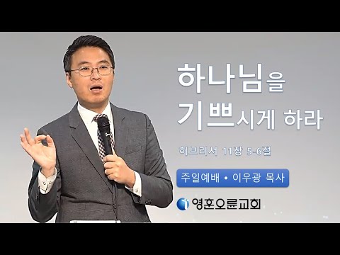 | 제목 : 하나님을 기쁘시게 하라 본문 : 히브리서 11 : 5~6 설교 : 이우광 목사 5. 믿음으로 에녹은 죽음을 보지 않고 옮겨졌으니 하나님이 그를 옮기심으로 다시 보이지 아니하였느니라 그는 옮겨지기 전에 하나님을 기쁘시게 하는 자라 하는 증거를 받았느니라 6. 믿음이 없이는 하나님을 기쁘시게 하지 못하나니 하나님께 나아가는 자는 반드시 그가 계신 것과 또한 그가 자기를 찾는 자들에게 상 주시는 이심을 믿어야 할지니라 |