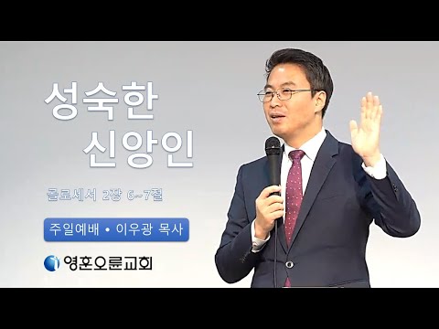 제목 : 성숙한 신앙인 본문 : 골로새서 2장 6~7절 설교 : 이우광 목사 (골 2:6) 그러므로 너희가 그리스도 예수를 주로 받았으니 그 안에서 행하되 (골 2:7) 그 안에 뿌리를 박으며 세움을 받아 교훈을 받은 대로 믿음에 굳게 서서 감사함을 넘치게 하라 |