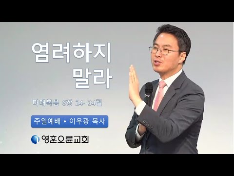 | 제목 : 염려하지 말라 본문 : 마태복음 6장 24~34절 설교 : 이우광 목사 24 한 사람이 두 주인을 섬기지 못할 것이니 혹 이를 미워하고 저를 사랑하거나 혹 이를 중히 여기고 저를 경히 여김이라 너희가 하나님과 재물을 겸하여 섬기지 못하느니라 25 그러므로 내가 너희에게 이르노니 목숨을 위하여 무엇을 먹을까 무엇을 마실까 몸을 위하여 무엇을 입을까 염려하지 말라 목숨이 음식보다 중하지 아니하며 몸이 의복보다 중하지 아니하냐 26 공중의 새를 보라 심지도 않고 거두지도 않고 창고에 모아들이지도 아니하되 너희 하늘 아버지께서 기르시나니 너희는 이것들보다 귀하지 아니하냐 27 너희 중에 누가 염려함으로 그 키를 한 자라도 더할 수 있겠느냐 28 또 너희가 어찌 의복을 위하여 염려하느냐 들의 백합화가 어떻게 자라는가 생각하여 보라 수고도 아니하고 길쌈도 아니하느니라 29 그러나 내가 너희에게 말하노니 솔로몬의 모든 영광으로도 입은 것이 이 꽃 하나만 같지 못하였느니라 30 오늘 있다가 내일 아궁이에 던져지는 들풀도 하나님이 이렇게 입히시거든 하물며 너희일까보냐 믿음이 작은 자들아 31 그러므로 염려하여 이르기를 무엇을 먹을까 무엇을 마실까 무엇을 입을까 하지 말라 32 이는 다 이방인들이 구하는 것이라 너희 하늘 아버지께서 이 모든 것이 너희에게 있어야 할 줄을 아시느니라 33 그런즉 너희는 먼저 그의 나라와 그의 의를 구하라 그리하면 이 모든 것을 너희에게 더하시리라 34 그러므로 내일 일을 위하여 염려하지 말라 내일 일은 내일이 염려할 것이요 한 날의 괴로움은 그 날로 족하니라 |