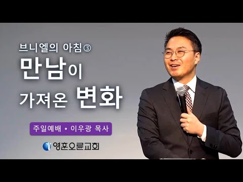 | 제목 : 만남이 가져온 변화 말씀 : 창세기 32장 30~32절 설교 : 이우광 목사 (창 32:30) 그러므로 야곱이 그 곳 이름을 브니엘이라 하였으니 그가 이르기를 내가 하나님과 대면하여 보았으나 내 생명이 보전되었다 함이더라 (창 32:31) 그가 브니엘을 지날 때에 해가 돋았고 그의 허벅다리로 말미암아 절었더라 (창 32:32) 그 사람이 야곱의 허벅지 관절에 있는 둔부의 힘줄을 쳤으므로 이스라엘 사람들이 지금까지 허벅지 관절에 있는 둔부의 힘줄을 먹지 아니하더라 |