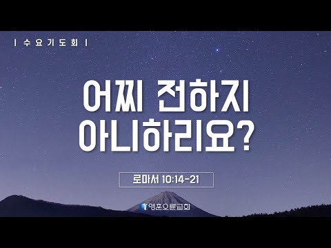 | 제목 : 어찌 전하지 아니하리요? 본문 : 로마서 10:14-21 설교 : 유성민 목사 (롬 10:14) 그런즉 그들이 믿지 아니하는 이를 어찌 부르리요 듣지도 못한 이를 어찌 믿으리요 전파하는 자가 없이 어찌 들으리요 (롬 10:15) 보내심을 받지 아니하였으면 어찌 전파하리요 기록된 바 아름답도다 좋은 소식을 전하는 자들의 발이여 함과 같으니라 (롬 10:16) 그러나 그들이 다 복음을 순종하지 아니하였도다 이사야가 이르되 주여 우리가 전한 것을 누가 믿었나이까 하였으니 (롬 10:17) 그러므로 믿음은 들음에서 나며 들음은 그리스도의 말씀으로 말미암았느니라 (롬 10:18) 그러나 내가 말하노니 그들이 듣지 아니하였느냐 그렇지 아니하니 그 소리가 온 땅에 퍼졌고 그 말씀이 땅 끝까지 이르렀도다 하였느니라 (롬 10:19) 그러나 내가 말하노니 이스라엘이 알지 못하였느냐 먼저 모세가 이르되 내가 백성 아닌 자로써 너희를 시기하게 하며 미련한 백성으로써 너희를 노엽게 하리라 하였고 (롬 10:20) 이사야는 매우 담대하여 내가 나를 찾지 아니한 자들에게 찾은 바 되고 내게 묻지 아니한 자들에게 나타났노라 말하였고 (롬 10:21) 이스라엘에 대하여 이르되 순종하지 아니하고 거슬러 말하는 백성에게 내가 종일 내 손을 벌렸노라 하였느니라 영훈오륜교회는 하나님의 꿈이 되고, 대안이 되기 위해 오륜교회에서 '영훈고등학교'에 세우는 분립개척교회입니다. 하나님의 꿈이며, 대안인 여러분을 건강하고 행복한 영훈오륜교회로 초대합니다. 위치: 영훈고등학교 배움관(미아사거리역 6번출구) 전화: 02-945-5251 웹사이트:www.yhoryun.org 페이스북: www.facebook.com/yhoryun 블로그: blog.naver.com/yhoryun |