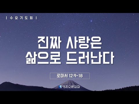 | 제목 : 진짜 사랑은 삶으로 드러난다 본문 : 로마서 12:9-18 설교 : 유성민 목사 (롬 12:9) 사랑에는 거짓이 없나니 악을 미워하고 선에 속하라 (롬 12:10) 형제를 사랑하여 서로 우애하고 존경하기를 서로 먼저 하며 (롬 12:11) 부지런하여 게으르지 말고 열심을 품고 주를 섬기라 (롬 12:12) 소망 중에 즐거워하며 환난 중에 참으며 기도에 항상 힘쓰며 (롬 12:13) 성도들의 쓸 것을 공급하며 손 대접하기를 힘쓰라 (롬 12:14) 너희를 박해하는 자를 축복하라 축복하고 저주하지 말라 (롬 12:15) 즐거워하는 자들과 함께 즐거워하고 우는 자들과 함께 울라 (롬 12:16) 서로 마음을 같이하며 높은 데 마음을 두지 말고 도리어 낮은 데 처하며 스스로 지혜 있는 체 하지 말라 (롬 12:17) 아무에게도 악을 악으로 갚지 말고 모든 사람 앞에서 선한 일을 도모하라 (롬 12:18) 할 수 있거든 너희로서는 모든 사람과 더불어 화목하라 영훈오륜교회는 하나님의 꿈이 되고, 대안이 되기 위해 오륜교회에서 '영훈고등학교'에 세우는 분립개척교회입니다. 하나님의 꿈이며, 대안인 여러분을 건강하고 행복한 영훈오륜교회로 초대합니다. 위치: 영훈고등학교 배움관(미아사거리역 6번출구) 전화: 02-945-5251 웹사이트:www.yhoryun.org 페이스북: www.facebook.com/yhoryun 블로그: blog.naver.com/yhoryun |