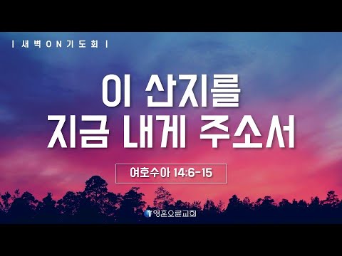 | 제목 : 이 산지를 지금 내게 주소서 본문 : 여호수아 14:6-15 설교 : 김내곤 목사 찬송가 :545장 - 이 눈에 아무증거 아니 뵈어도 (수 14:6) 그 때에 유다 자손이 길갈에 있는 여호수아에게 나아오고 그니스 사람 여분네의 아들 갈렙이 여호수아에게 말하되 여호와께서 가데스 바네아에서 나와 당신에게 대하여 하나님의 사람 모세에게 이르신 일을 당신이 아시는 바라 (수 14:7) 내 나이 사십 세에 여호와의 종 모세가 가데스 바네아에서 나를 보내어 이 땅을 정탐하게 하였으므로 내가 성실한 마음으로 그에게 보고하였고 (수 14:8) 나와 함께 올라갔던 내 형제들은 백성의 간담을 녹게 하였으나 나는 내 하나님 여호와께 충성하였으므로 (수 14:9) 그 날에 모세가 맹세하여 이르되 네가 내 하나님 여호와께 충성하였은즉 네 발로 밟는 땅은 영원히 너와 네 자손의 기업이 되리라 하였나이다 (수 14:10) 이제 보소서 여호와께서 이 말씀을 모세에게 이르신 때로부터 이스라엘이 광야에서 방황한 이 사십오 년 동안을 여호와께서 말씀하신 대로 나를 생존하게 하셨나이다 오늘 내가 팔십오 세로되 (수 14:11) 모세가 나를 보내던 날과 같이 오늘도 내가 여전히 강건하니 내 힘이 그 때나 지금이나 같아서 싸움에나 출입에 감당할 수 있으니 (수 14:12) 그 날에 여호와께서 말씀하신 이 산지를 지금 내게 주소서 당신도 그 날에 들으셨거니와 그 곳에는 아낙 사람이 있고 그 성읍들은 크고 견고할지라도 여호와께서 나와 함께 하시면 내가 여호와께서 말씀하신 대로 그들을 쫓아내리이다 하니 (수 14:13) 여호수아가 여분네의 아들 갈렙을 위하여 축복하고 헤브론을 그에게 주어 기업을 삼게 하매 (수 14:14) 헤브론이 그니스 사람 여분네의 아들 갈렙의 기업이 되어 오늘까지 이르렀으니 이는 그가 이스라엘의 하나님 여호와를 온전히 좇았음이라 (수 14:15) 헤브론의 옛 이름은 기럇 아르바라 아르바는 아낙 사람 가운데에서 가장 큰 사람이었더라 그리고 그 땅에 전쟁이 그쳤더라 |
